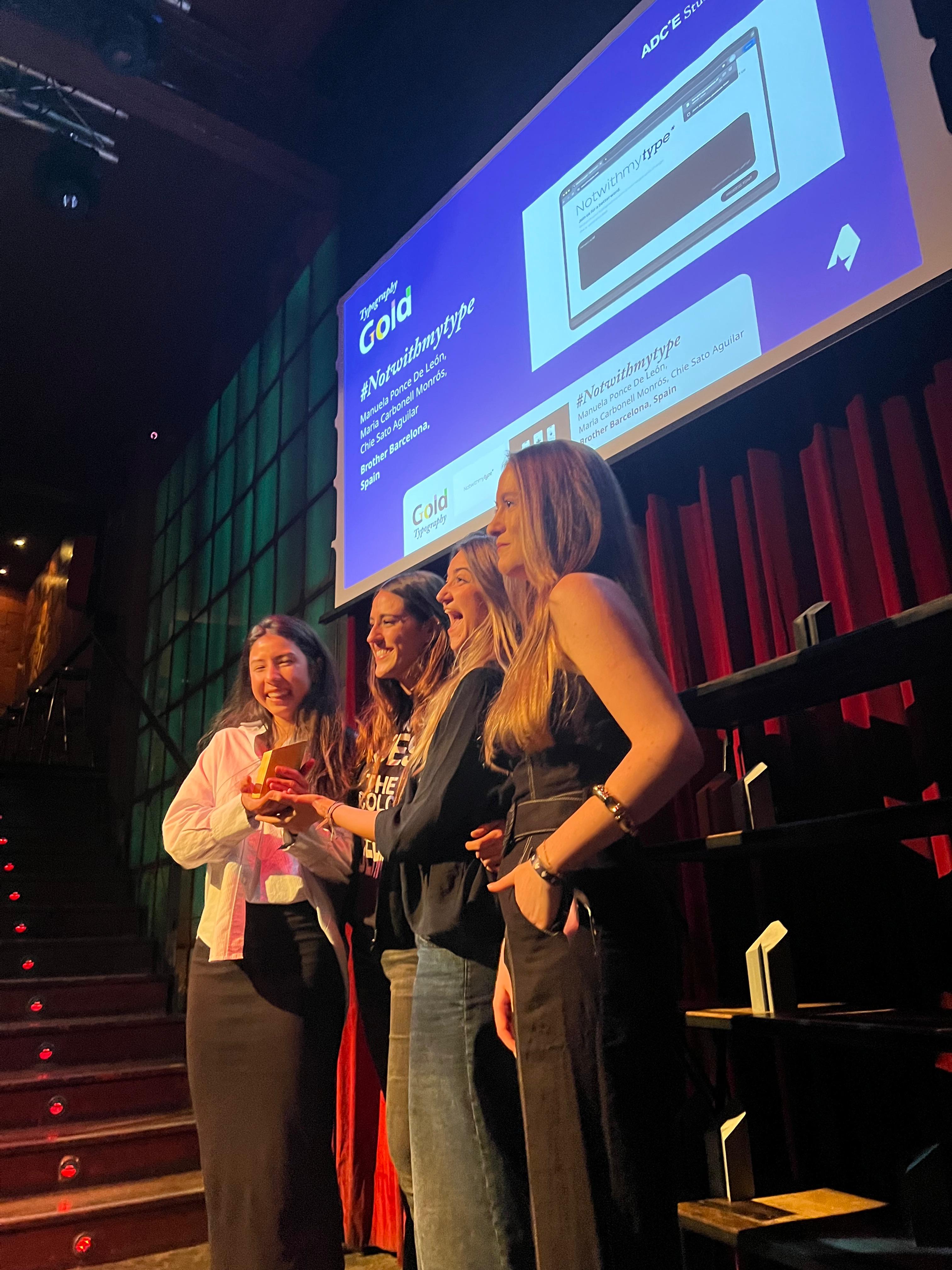 Oro para el proyecto #notwithmytype, desarrollado por Manu, Chie y María.
